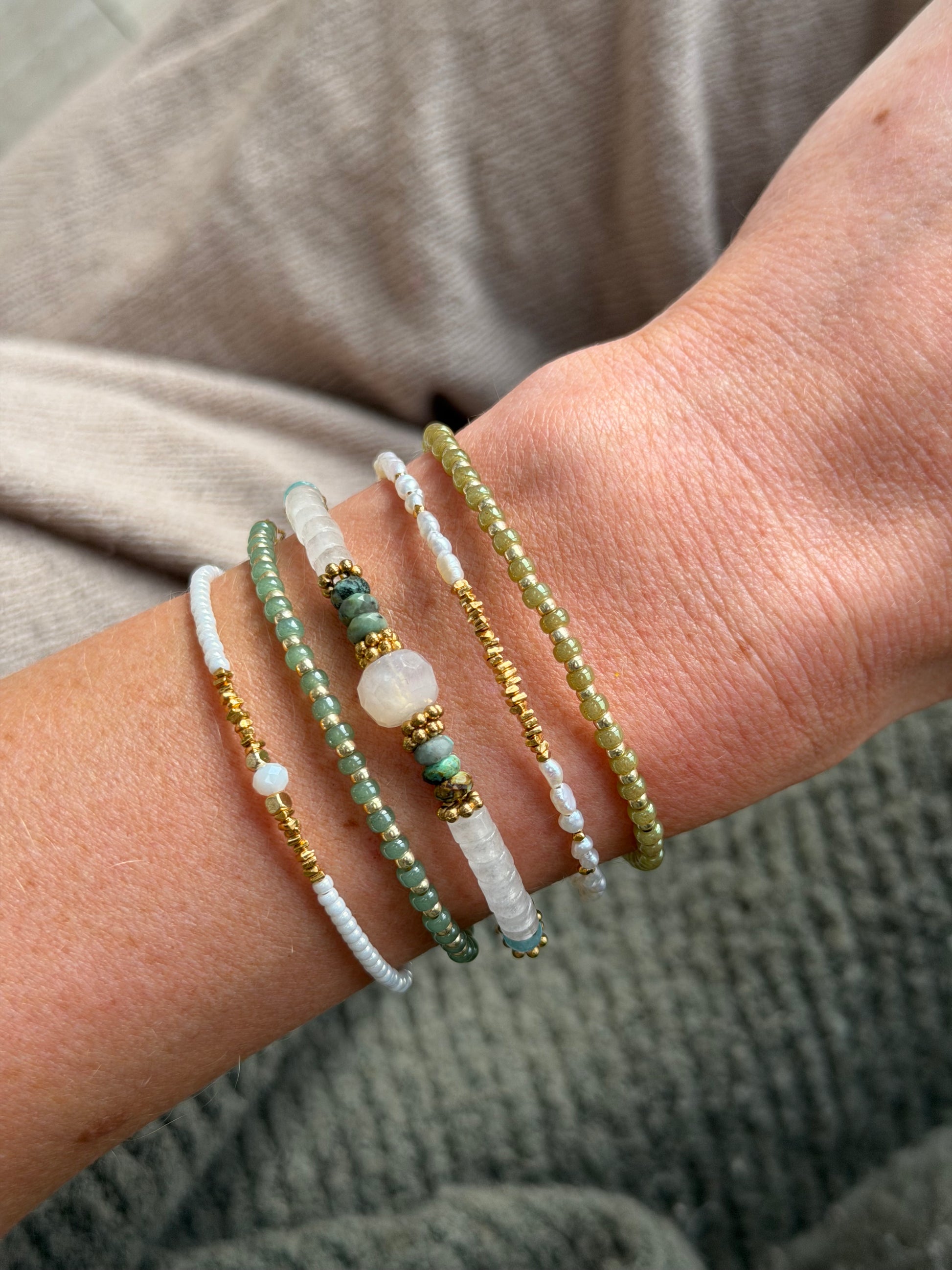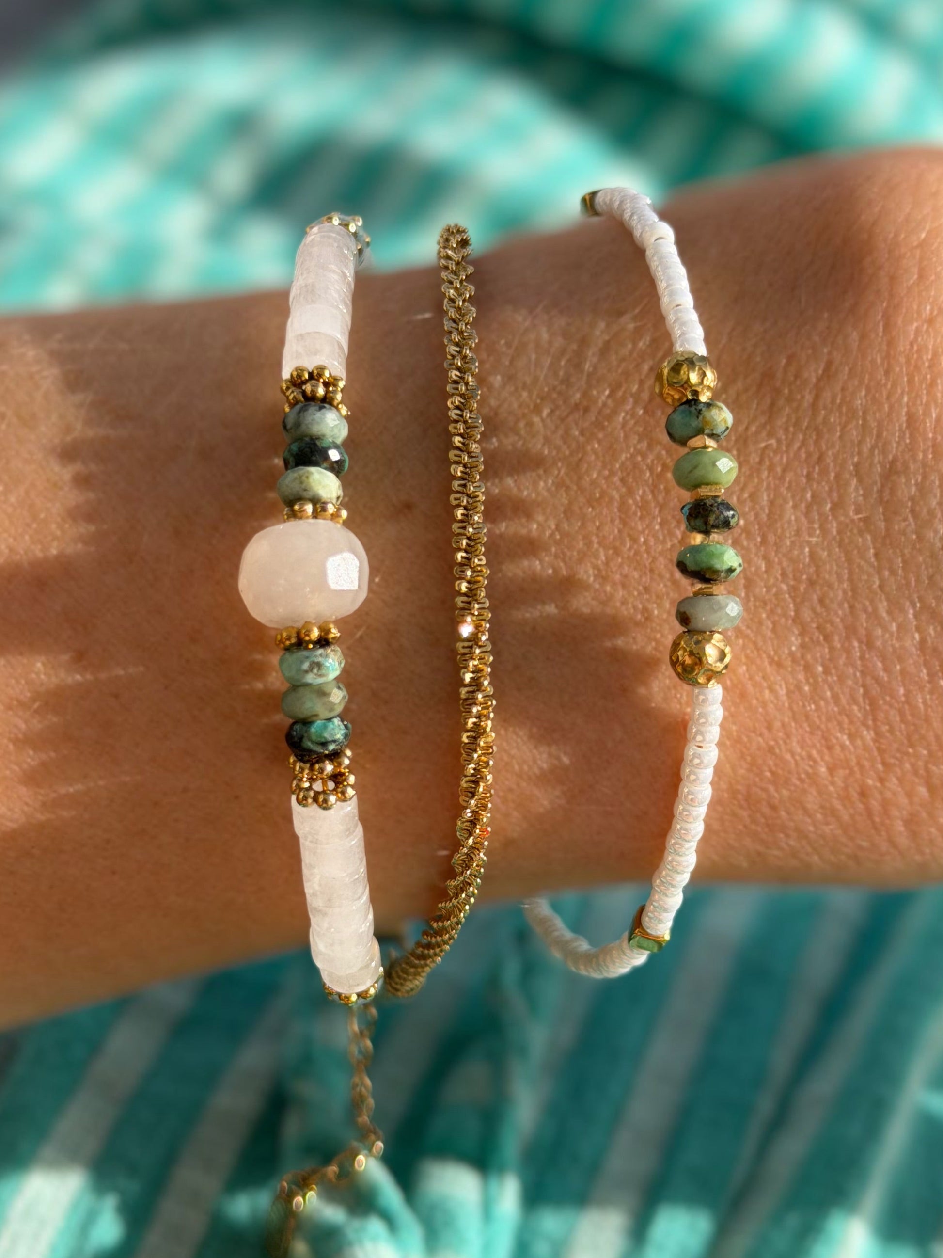 Each bracelet is handmade in small batches, with natural variations in every stone.