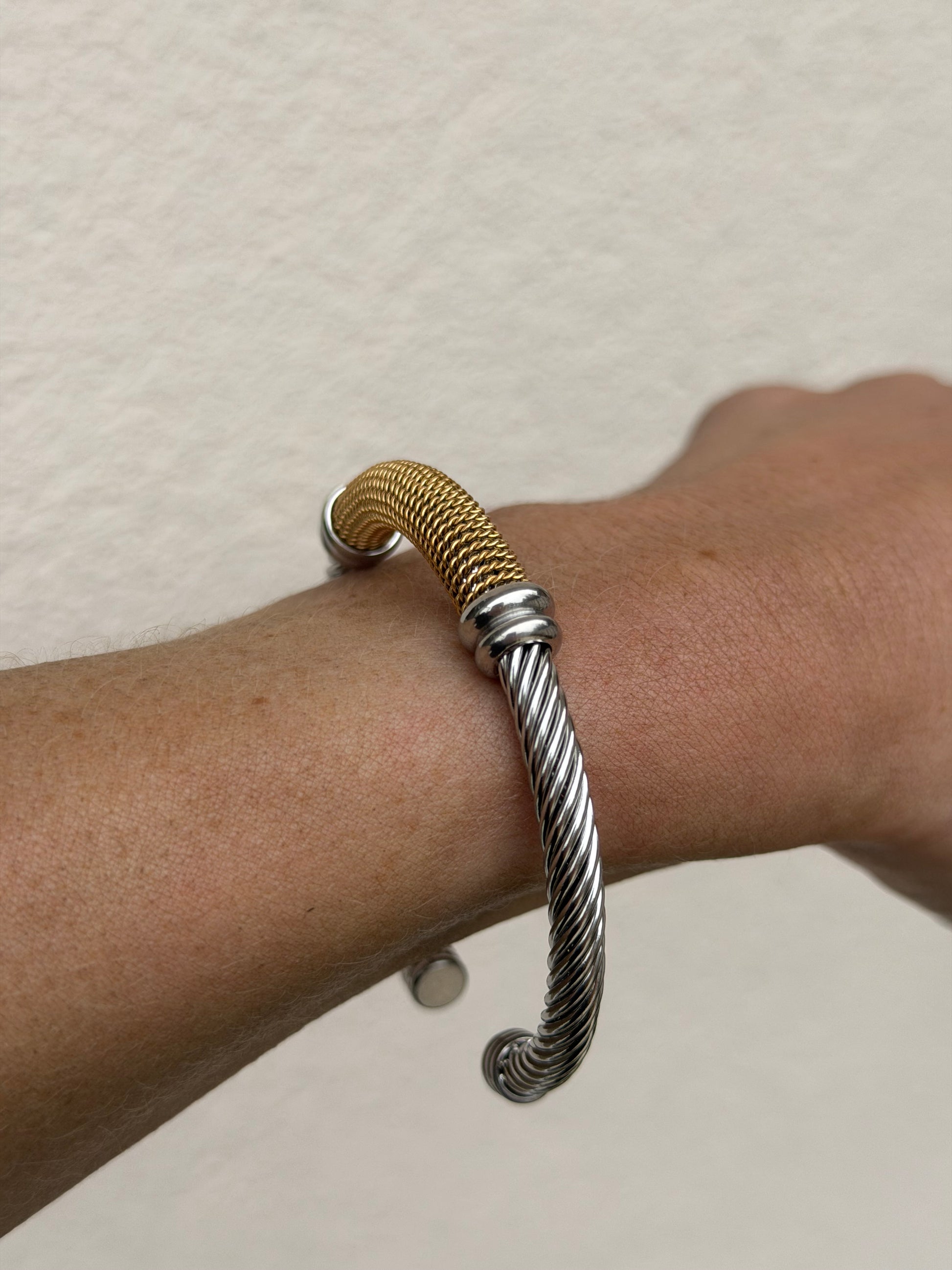 Mesh-Style Gold & Silver Cuff Bracelet